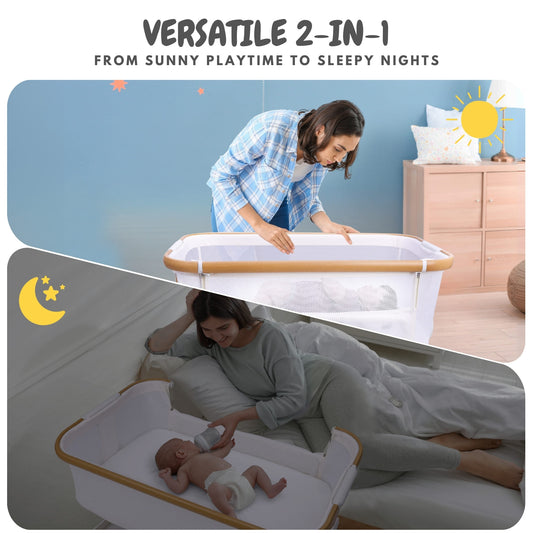Bicystar Baby Bassinet Bedside Sleeper 2 in 1, All Mesh for Newborn to 6 Months Infant